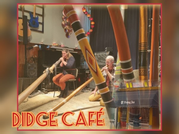 Wij danken Kees voor de organisatie van de vele gezellige zondagen waarop deze muzikanten een plek hadden gevonden om hun bijzondere muziek te spelen en te delen. Dus ... nog één keer kan men tot ongeveer 18.00 uur (afhankelijk van aantal deelnemers) meespelen op of luisteren naar de didgeridoo in de allerlaatste DIDGE CAFÉ.