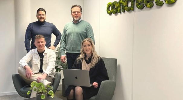 Michel van Velzen en Daisy Bakker van The MindOffice flankeren Martin Dekker en Carlo de Reuver van Concreeto tijdens ondertekening overeenkomst