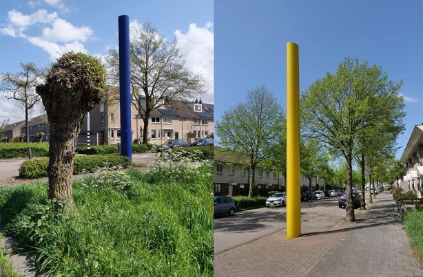 * Tsja, twee ‘palen’ in de grond. Ik krijg er geen bepaald gevoel of gedachte bij. Ik kan me wel voorstellen dat het in die wijk letterlijk gebruikt wordt als een soort ‘baken’.