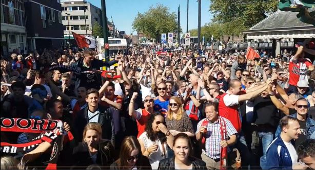 Wie geen kaartje heeft en zich geen plekje rond de grasmat heeft weten te bemachtigen die kan vanaf 14.00 uur naar de Irish Pub. Daar heeft eigenaar en sportfanaat Junior Flynn wederom een groot scherm. Ditmaal op het midden van de Westhavenplaats zodat er nog meer liefhebbers met een roodwit Rotterdams hart kunnen genieten.