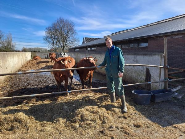 Boven: Boer Sietse Rodenburg "groos" op zijn brandrode runderen