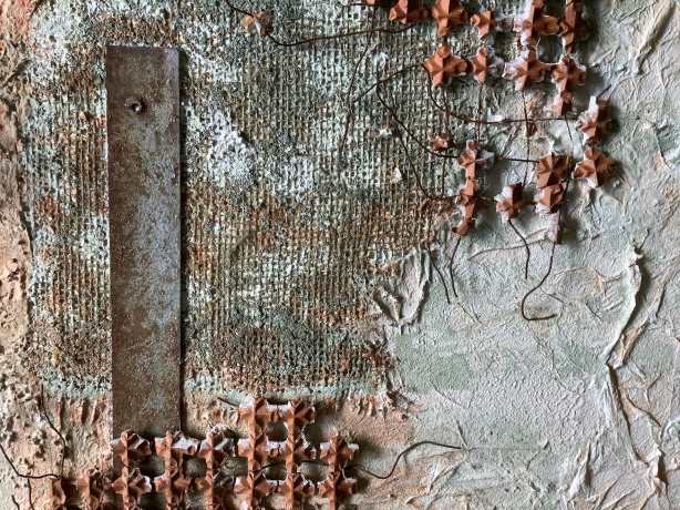 Corrie laat zich graag inspireren door haar directe omgeving. Met alledaagse materialen zoals papier, verpakkingen, textiel metaal, rubber en andere zaken die zij vindt langs de zee of in de droge natuur, vormen de basis van haar werk.