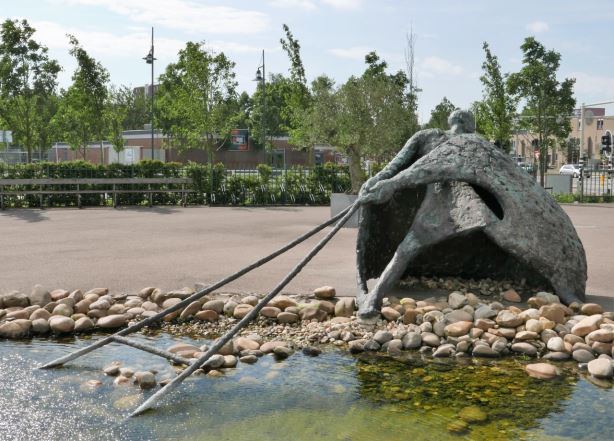 Voor de maand augustus heeft de werkroep een bijzonder krachtig beeld geselecteerd. Het is De roeping van Andreas. Een fors bronzen beeld van de Maassluise kunstenaar Dick Tulp.