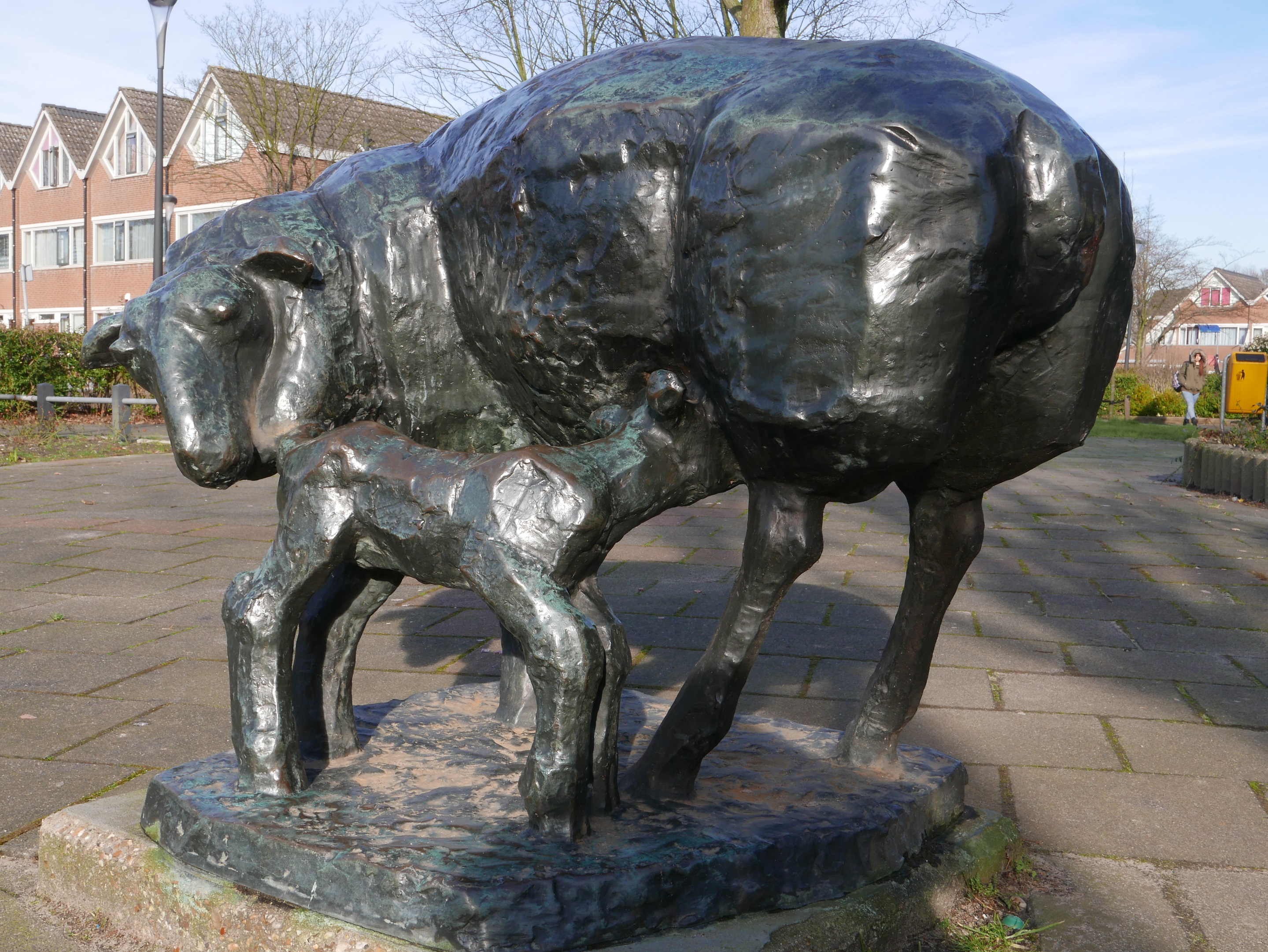 Zie voor de volledige beschrijving van het beeld: http://crmmaassluis.nl/kunstwerk/schaap-met-lam/