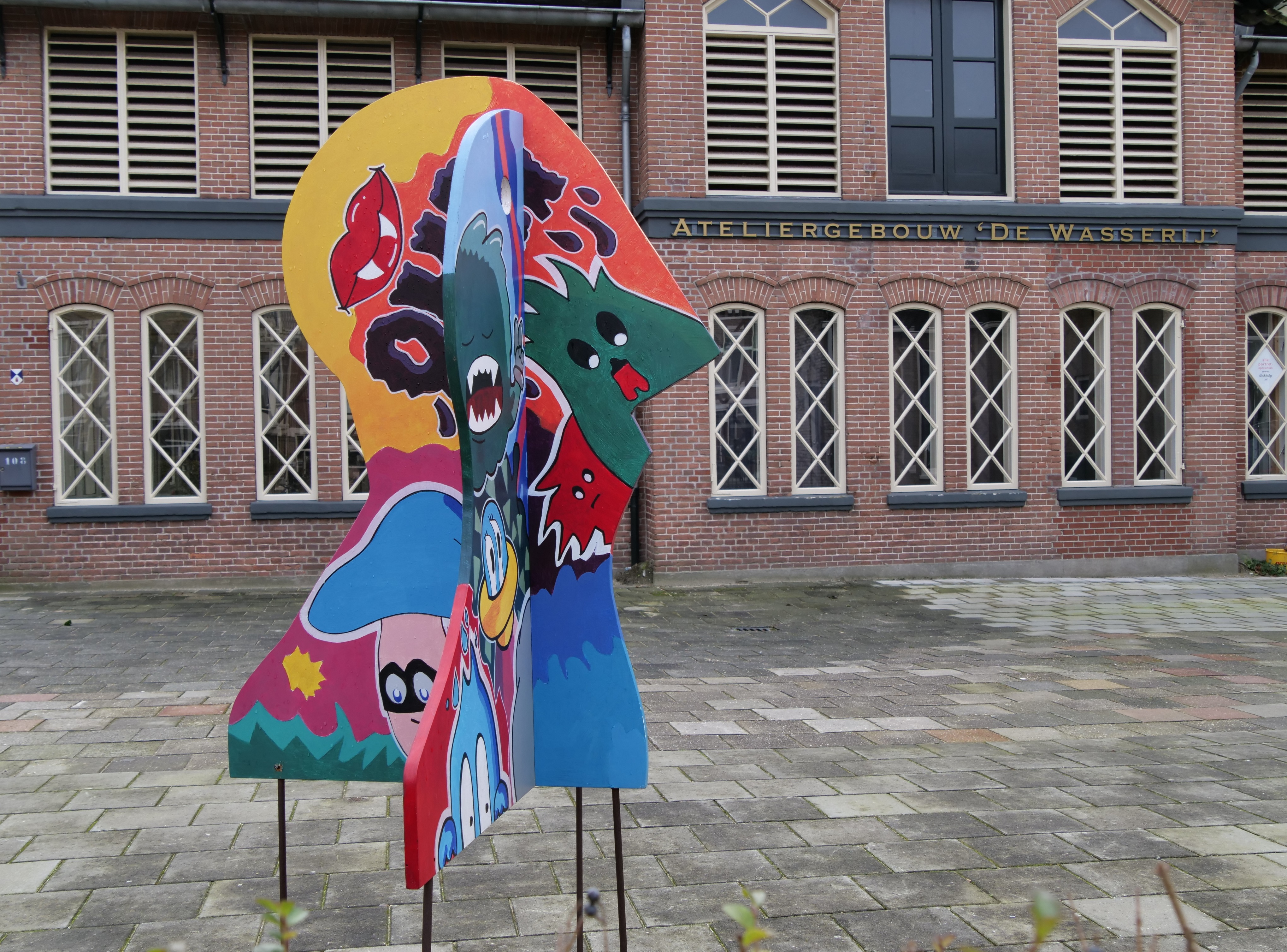 Resultaat: een kleine 70 inzendingen, onder andere van derdeklassers van het Reviuslyceum. De kunstenaars kozen hieruit het ontwerp van Fabiënne Prins. Zij mocht samen met kunstenaar en initiatiefneemster Ans van de Wiel de kop op ware grootte beschilderen.