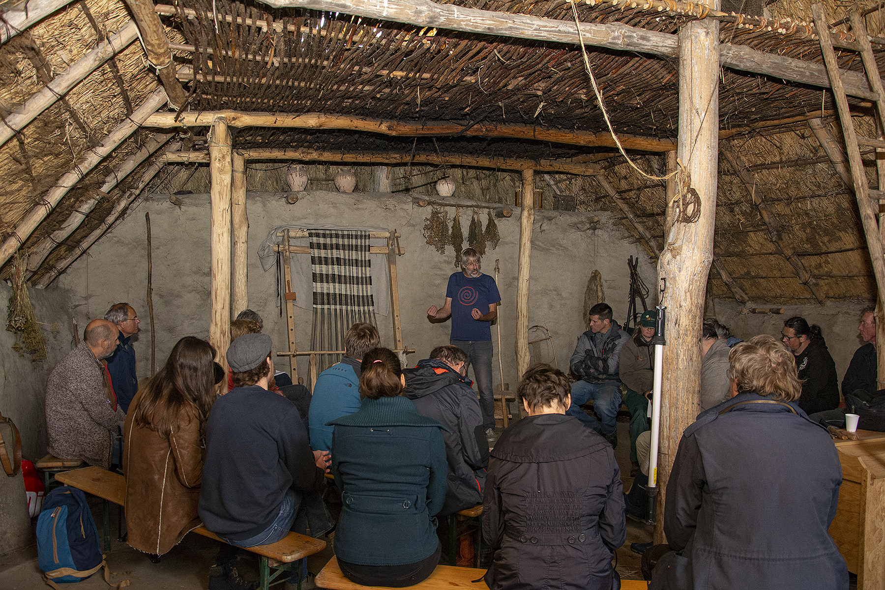 Het archeologisch erf Masamuda in de Vlaardingse Broekpolder groeit gestaag. Er staan inmiddels huizen uit de steentijd en de middeleeuwen en steeds meer scholen en andere groepen bezoeken het erf als onderdeel van hun lesprogramma. Daarom moet het aantal mensen dat de groepen ontvangt en van informatie voorziet worden vergroot. De workshop voor docenten bestond uit een didactisch deel – hoe laat je een puber warmlopen voor de steentijd en hoe kun je een leerling uit groep 8 zelf laten ontdekken hoe het leven in de middeleeuwen was? – en actuele informatie over archeologie, in het bijzonder de Vlaardingencultuur en de volle middeleeuwen. Twee bevlogen archeologen, Jeroen ter Brugge en Jurriën Moree, namen dat deel van de cursus voor hun rekening. “Ik ben zelf opgeleid tot archeoloog, maar sta sinds enkele jaren voor de klas,” zegt deelnemer Lars Schaarman. “Toch heb ik veel opgestoken van deze middag. Ik hoop het snel in mijn eigen klas en bij Masamuda uit te kunnen proberen.”