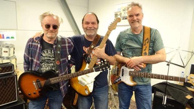 Als De Schiedammer Online | De Vlaardinger donderdag 6 juni om 19.00 uur aanschuift in de oefenruimte zijn organisator/gitarist Marco Diamantatos en gitarist Fred van Willigen juist bezig met het opstellen van de apparatuur. Bassist Rob op ’t Ende volgt ietsje later. Hekel aan opstellen van apparatuur wordt vermoed, laat klaar met werken is de ware reden.