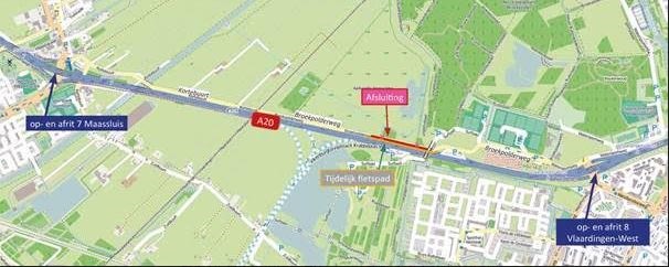 Het auto- en vrachtverkeer wordt omgeleid via de A20. Woningen en bedrijven aan de Kortebuurt zijn bereikbaar via Maassluis. De verenigingen aan de Broekpolderweg en het recreatiegebied bij de Krabbeplas zijn bereikbaar via Vlaardingen.