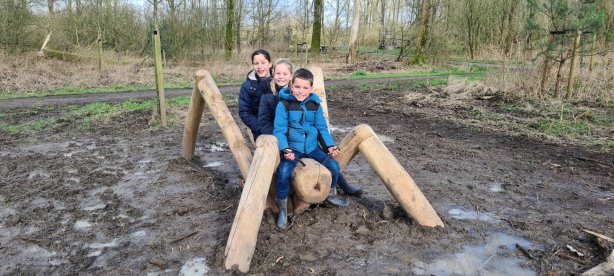 Het Klauterwoud is ingericht als avontuurlijke speelplek voor iedereen die houdt van avontuur, water en modder. Hier kun je struinen over paden, door de bosjes, over een labyrint van boomstammen en kruipen door grote betonnen buizen en door modderige greppels. Vies worden mag hier. En sinds deze week vind je er verschillende dieren waar je op kunt klimmen, onderdoor kruipen of er bovenop kunt zitten. Trek wel je laarzen aan, want het is behoorlijk nat op dit moment in de Broekpolder en het gras moet nog een beetje groeien.