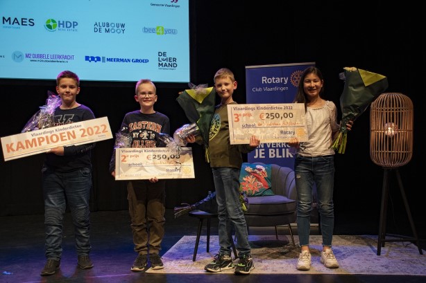 Het zesde door Rotaryclub Vlaardingen georganiseerde Vlaardings Kinderdictee is gewonnen door Tim Onverwacht, leerling van het IKC Prins Willem Alexander. Hij is met 6 fouten de beste van de 80 finalisten die in de Stadsgehoorzaal de eindstrijd speelden. De tweede prijs is voor Mik de Willigen van de Bavinckschool. Noud Buitenwerf van de Hoeksteen en Elina Ahmadi van het Anker zijn gedeeld derde.
