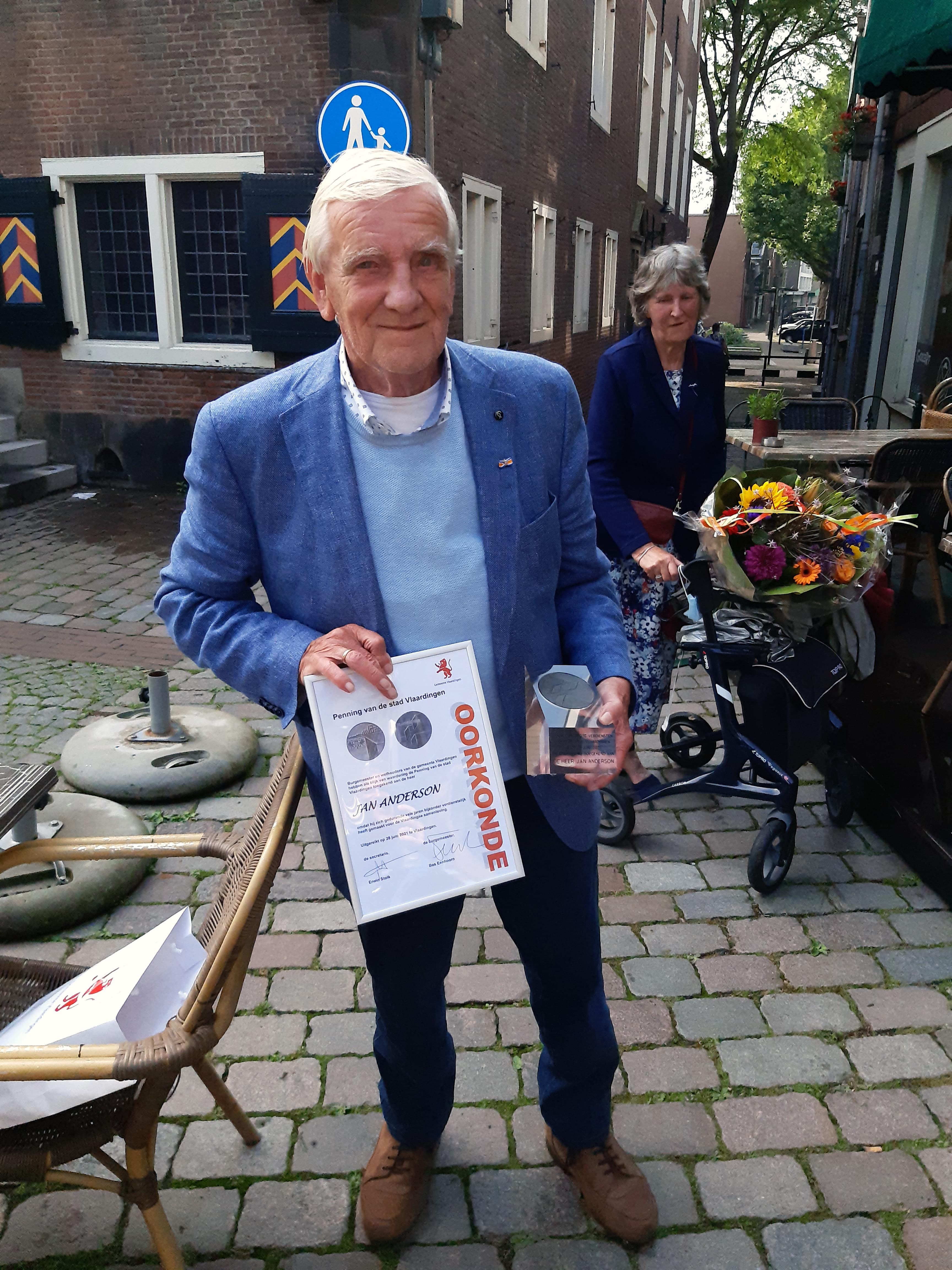 Jan Anderson van het Streekmuseum Jan Anderson heeft maandag 28 juni 2021 de Stads Penning van de gemeente Vlaardingen ontvangen uit handen van Burgemeester Bas Eenhoorn.