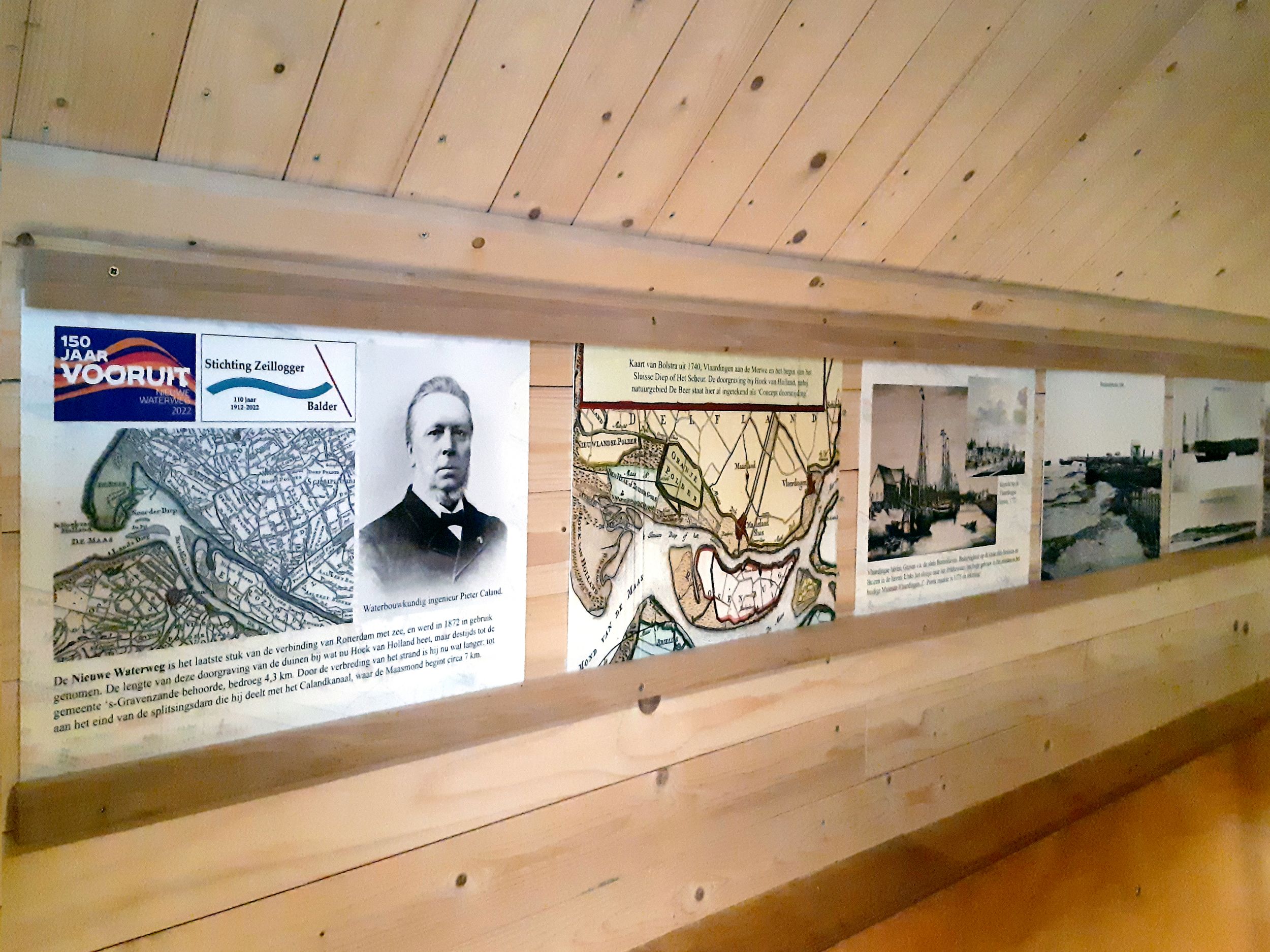 De tentoonstelling over de bouw van de Nieuwe Waterweg is te zien in de 110 jaar Historische Zeillogger Balder. Achttien panelen tonen het proces van graven tot de eerste doorvaart (vermoedelijk) op 9 maart 1872 van het eerste zeeschip de Harwichboot Richard Young. Hoewel er reeds eerder enkel haringloggers reeds waren gepasseerd. Deze verbinding is voor de vissersvaart een geweldige uitkomst. De loggers en andere vissersschepen kunnen nu rechtstreeks naar zee om te vissen op de haring.