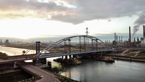 De boogbrug van ca. 200 m lang, 20 m breed en meer dan 40 m hoog is in de afgelopen week van de werf in Krimpen aan den IJssel over water vervoerd, dwars door Rotterdam. Daarbij passeerde het transport achtereenvolgens de Van Brienenoordbrug, de Hef, de Koninginnebrug, de Erasmusbrug en de Botlekbrug. Het tweede gedeelte van de reis ging via het Hartelcomplex en de Harmsenbrug in het Hartelkanaal naar de Maasvlakte.