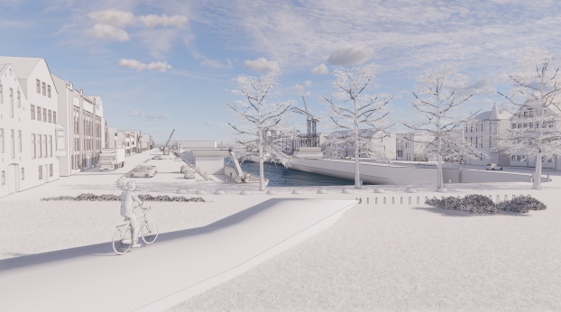 De KW Haven was tot 1926 een eiland. Eentje met een open verbinding met de buitenhaven. Toen de brug was verwijderd en de verbinding gedempt ontstond ter plekke het Grote Visserijplein en kwam een eind aan het stads isolement.’