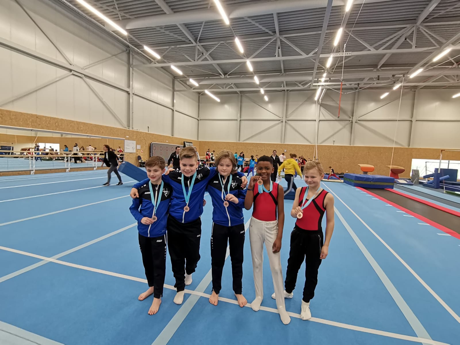 Eli liet een mooie oefening op het hoge rek zien, met een salto als afsprong. Dylano ging voor een nieuwe sprong. Hij maakte een overslag over de Pegasus. Door deze mooie oefeningen en de goede samenwerking werd de derde plaats behaald. Het team ging met een mooie medaille naar huis.