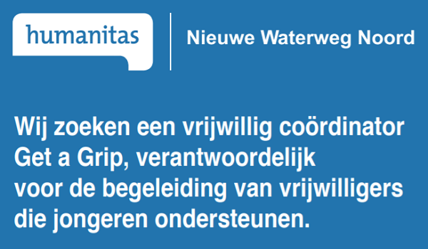 Website: https://www.humanitas.nl/afdeling/vereniging-nieuwe-waterweg-noord/over-ons/Vacature: https://www.humanitas.nl/afdeling/vereniging-nieuwe-waterweg-noord/vacatures/vrijwillig-coordinator-get-a-grip/