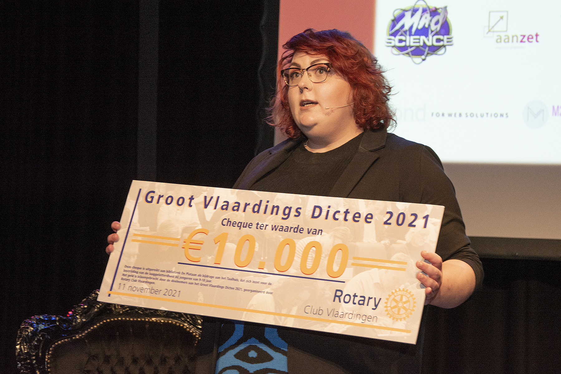 Het Vlaardings Dictee is een sponsorwervingsactiviteit van Rotaryclub Vlaardingen. Het ingezameld geld gaat naar een goed doel. De club heeft zich voor drie jaar verbonden aan de strijd tegen laaggeletterdheid in Vlaardingen. Aan het eind van de avond kreeg Linde van Opstal, initiator van het Taalhuis in Vlaardingen, een cheque overhandigd van € 10.000.
