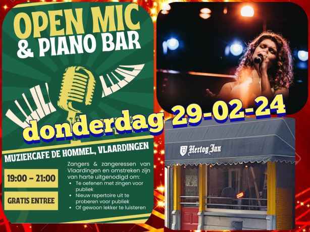 VLAARDINGEN - Wie wil zingen, met of zonder band, kan vanaf vandaag, donderdag 29 februari, met een gerust hart naar Muziekcafé de Hommel. Geschoold zangeres Nicole Koning-Bouw staat je bij aan de piano. Eigen repertoire? Werk van een ander? Je bent te allen tijde welkom.