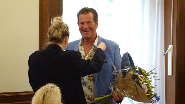 Na deze vriendelijke en belangstellende overhoring kwam er een machtige bos bloemen en werd er een Zilveren Haring op zijn linker revers geprikt; het deed geen pijn. Na nog wat kout en een korte rondleiding door het verder op een bruiloft na uitgestorven stadhuis was het feest voorbij. Maar niet eerder dan dat Brigitte Bot had toegezegd dat er binnenkort nog een interview met Wally plaats zou vinden voor een gemeentelijk digitaal orgaan.