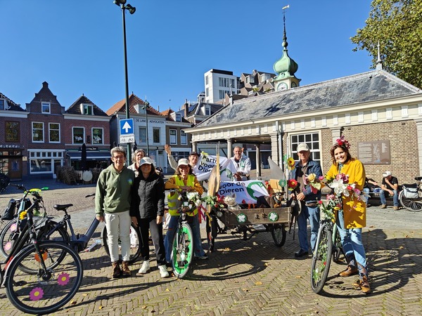 VLAARDINGEN /SCHIEDAM - Op zaterdag 5 oktober fietste de werkgroep Partij voor de Dieren Schiedam-Vlaardingen samen met een enthousiaste groep deelnemers in een kleurrijke en feestelijke optocht door Vlaardingen en Schiedam.